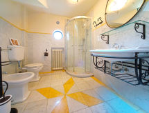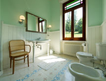 Historisches Herrenhaus "Villa Sarezzano", Baujahr 1930. 400 m vom Zentrum von Sarezzano, 8 km vom Zentrum von Tortona, 21 km vom Zentrum von Alessandria, 75 km vom Meer. Zur Alleinbenutzung: Grundstück 5'000 m2 (eingezäunt), Terrassengarten mit Pflanzen und Bäumen, Wiese, Schwimmbad (12 x 6 m, 110 - 220 cm tief, saisonale Verfügbarkeit: 13.Mai. - 15.Okt.). Terrasse, Gartenmöbel, Grill. Im Hause: Sprudelbad, Infrarotwärmekabine. Treppenweg bis zum Haus. Parkplatz (für 3 Autos) auf dem Grundstück. Einkaufsgeschäft 1 km, Supermarkt 6 km, Bahnstation "Tortona" 8 km. Golfplatz (18 Loch) 18 km. Der Besitzer akzeptiert keine Jugendgruppen.Interior