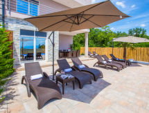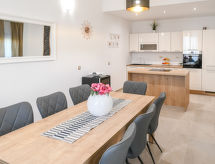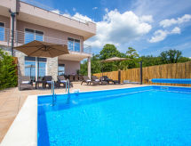 Pobri: Doppelhaus "Villa Stella", auf 3 Stockwerken, Baujahr 2018. Oberhalb von Opatija, 2.5 km vom Zentrum von Opatija, ruhige, sonnige Lage, 2.5 km vom Meer, 2.5 km vom Strand, in einer Sackgasse. Zur Mitbenutzung: Grundstück 1'200 m2, Rasen 200 m2. Kinderspielplatz (Rutschbahn, Schaukel). Zur Alleinbenutzung: Schwimmbad eckig, beheizt (7 x 4 m, 150 cm tief, saisonale Verfügbarkeit: 01.Mai. - 15.Okt.). Aussendusche, Terrasse (100 m2). Im Hause: Internetzugang, Tischtennis, Tischfussball, Waschmaschine. Parkplatz (für 4 Autos) beim Haus auf dem Grundstück. Einkaufsgeschäft 150 m, Restaurant 2.5 km, Kieselstrand 2.5 km, Strandbad 2.5 km, betonierter Strand 2.5 km. Jugendgruppen nur auf Anfrage. Bitte beachten: Ferienwohnung Ref. HR3105.126 befindet sich auf dem gleichen Grundstück. Das veranstalten von Partys ist nicht gestattet. Schwimmbad mit Wassertemperatur von 26-28°C. Videoüberwachung der Immobilie.Interior