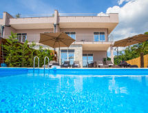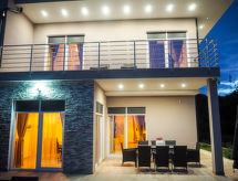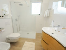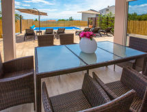 6-Zimmer-Doppelhaushälfte 160 m2 auf 3 Stockwerken, Südlage. Modern und gemütlich eingerichtet: Wohn-/Esszimmer 60 m2 mit TV (Flachbildschirm), Klimaanlage. Ausgang zur Terrasse, zum Schwimmbad. Offene Küche (Backofen, Geschirrspüler, 4 Glaskeramikherd Platten, Mikrowelle, Tiefkühler, elektrische Kaffeemaschine). Sep. WC. Obergeschoss: 1 Zimmer mit 2 Betten (80 cm, Länge 200 cm), TV (Flachbildschirm), Klimaanlage. 1 Zimmer mit 1 franz. Bett (160 cm, Länge 200 cm), TV (Flachbildschirm), Klimaanlage. Ausgang zur Terrasse. 1 Zimmer mit 1 franz. Bett (160 cm, Länge 200 cm), Dusche/Bidet/WC und TV (Flachbildschirm), Klimaanlage. Ausgang zur Terrasse. Dusche/WC. 2. Obergeschoss: 1 Zimmer mit 1 franz. Bett (160 cm, Länge 200 cm), Dusche und TV (Flachbildschirm), Klimaanlage. Ausgang zur Terrasse. 1 Zimmer mit 1 Bett (90 cm, Länge 200 cm), Waschbecken und Dusche. Ausgang zur Terrasse. Sep. WC. Bodenheizung, Warmluftheizung. Balkon 5 m2, 2 Terrassen 18 m2, überdacht, Terrasse 65 m2. Terrassenmöbel, Gartengrill (mobil), Liegestühle. Schöne Sicht auf das Meer. Zur Verfügung: Safe, Haartrockner. Internet (Wireless LAN, gratis). Aussicht auf das Meer und Lage sind traumhaft. Auf dem Spielplatz können sich die Kinder austoben. Auch wenn es in der Nacht noch so heiss bleibt, ist es schön, kann man die Klimaanlage einschalten und in einem angenehm temperierten Raumklima schlafen. Ein Geschirrspüler ist vorhanden. Es hat ein Parkplatz. Es hat ein Pool. Es hat ein privater Pool. Ein beheizter Pool ist vorhanden. Es hat ein Tischtennistisch.- Ausstattung