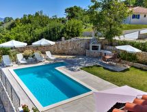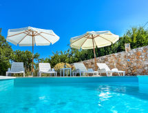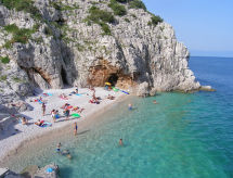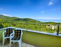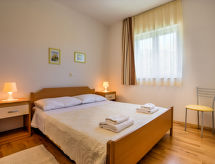 2-Zimmer-Wohnung 40 m2 im 1. Stock, Südostlage. Wohn-/Esszimmer 20 m2 mit 1 Doppeldiwanbett (150 cm, Länge 200 cm), Sat-TV (Flachbildschirm), Klimaanlage. Ausgang zum Balkon. 1 Zimmer mit 1 franz. Bett (160 cm, Länge 200 cm). Offene Küche (4 Kochplatten, Backofen, Tiefkühler, elektrische Kaffeemaschine). Dusche/Bidet/WC. Klimaanlage (extra). Balkon 6 m2. Balkonmöbel. Schöne Panoramasicht auf das Meer und die Ortschaft. Zur Verfügung: Internet (Wireless LAN, gratis). Überrascht Sie mit einer herrlichen Aussicht aufs Meer. Geeignet für ein Barbecue. Das Haus ist auch mit einem überdachten Parkplatz ausgestattet.- Ausstattung
