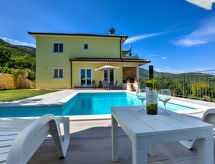 Schönes Dreifamilienhaus "Villa Tara". Oberhalb von Brseč, 400 m vom Zentrum von Brseč, 23 km vom Zentrum von Opatija, ruhige, erhöhte Lage, direkt am Waldrand, 1.3 km vom Meer, 1.3 km vom Strand, in einer Sackgasse, im Grünen. Zur Mitbenutzung: Grundstück 1'000 m2, Rasen 60 m2, Schwimmbad eckig (7 x 3 m, 24 m2, 160 cm tief, saisonale Verfügbarkeit: 01.Mai. - 15.Okt.) mit Innentreppe. Gartenmöbel, Grill. Im Hause: Internetzugang. Parkplatz (überdacht) beim Haus auf dem Grundstück. Einkaufsgeschäft 400 m, Restaurant 350 m, Kieselstrand 1.3 km. Nahe gelegene Sehenswürdigkeiten: Nature park Učka 4 km. Brsec ist ein für Bergwanderungen und Bergtouren geeigneter Ausgangspunkt.Interior