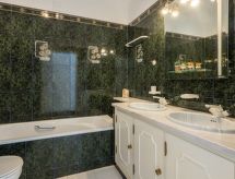 "Villa Verde", 5-Zimmer-Villa 188 m2 auf 2 Stockwerken. Geräumig, sehr komfortabel und gemütlich eingerichtet: Salon mit offenem Kamin, Esstisch, TV, Internationale TV-Sender, Flachbildschirm, Klimaanlage und Warmluftheizung. Ausgang zum Gartensitzplatz, zum Schwimmbad. 1 Zimmer mit 1 franz. Bett (180 cm, Länge 220 cm), Bad/Dusche/Bidet/WC, Klimaanlage und Warmluftheizung. Ausgang zum Schwimmbad. 1 Zimmer mit 2 Betten (90 cm, Länge 200 cm), Dusche/WC, Klimaanlage und Warmluftheizung. 1 Zimmer mit 1 franz. Bett (160 cm, Länge 200 cm), Bad/Dusche/Bidet/WC, Doppelwaschbecken, Klimaanlage und Warmluftheizung. Küche (4 Kochplatten, Backofen, Geschirrspüler, Mikrowelle, Tiefkühler, elektrische Kaffeemaschine). Obergeschoss: 1 Zimmer mit 2 Betten (90 cm, Länge 200 cm), Bad/Dusche/Bidet/WC, Doppelwaschbecken, Klimaanlage und Warmluftheizung. Ausgang zur Terrasse. Terrassenmöbel, Gartengrill, Liegestühle (8). Schöne Sicht auf den Golfplatz. Zur Verfügung: Waschmaschine, Wäschetrockner, Kinderhochstuhl, Babybett bis 3 Jahre. Bitte beachten: geeignet für Familien. Nichtraucher-Haus. Feuerlöscher. 74258/AL Eine Feuerstelle ist verfügbar. Ein privater Pool ist verfügbar. Ein beheizter Pool ist verfügbar. Unabhängiger sind Sie mit der eigens vorhandenen Waschmaschine. Es hat ein Wäschetrockner.- Charakteristik des Mietobjekts