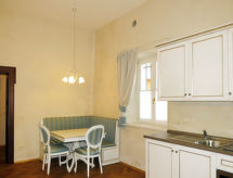 Auf Weingut "Villa Vitas", aus dem 17. Jahrhundert. Mietobjekt bestehend aus Haupt- und Nebengebäude, im Ortsteil Strassoldo, 4.5 km vom Zentrum von Cervignano del Friuli, 6 km vom Zentrum von Palmanova, 22 km vom Meer. Zur Mitbenutzung: Grundstück 12'000 m2, Park, gepflegter Garten mit Rasen und Bäumen. Tennis, Volleyball, Gartenmöbel, Parkplatz auf dem Grundstück. Lebensmittelgeschäft 200 m, Bahnstation "Cervignano" 4.5 km, Sandstrand "Grado" 22 km. Nahe gelegene Sehenswürdigkeiten: Aquileia 11 km, Udine 30 km, Trieste 56 km. Weinverkauf sowie auf Wunsch und nach Absprache mit dem Vermieter Weinproben. Bespielbare Tennisplätze sind disponibel für sportliche Ferienwochen.Interior