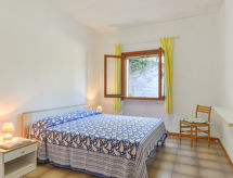 2-Zimmer-Wohnung 55 m2, im Erdgeschoss. Zweckmässig eingerichtet: Wohn-/Schlafzimmer mit 1 Doppeldiwanbett und Sat-TV. Ausgang zum Gartensitzplatz. 1 Zimmer mit 1 Doppelbett. Kochnische (4 Flammen, Tiefkühler) mit Esstisch. Dusche/Bidet/WC. Keine Heizmöglichkeit. Gartensitzplatz 20 m2. Terrassenmöbel, Liegestühle (2). Zur Verfügung: Safe, Fliegengitter. Internet (Wireless LAN). Parkplatz (1 Auto) beim Haus. Bitte beachten: geeignet für Familien. 1 Haustier/Hund erlaubt. Eigener Eingang. Es hat eine Veranda.- Ausstattung