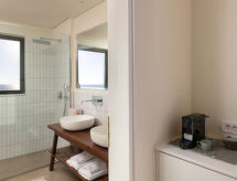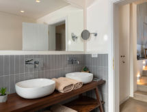 Moderne, schöne, alleinstehende Villa "Vista Mare". Im Ortsteil Pefkoi, 6 km vom Zentrum von Lindos, sonnige Lage, 40 m vom Meer, 750 m vom Strand. Zur Alleinbenutzung: schöner, gepflegter Garten mit Blumen und Bäumen, Liegewiese, Schwimmbad eckig (15 m2, 120 cm tief, saisonale Verfügbarkeit: 01.Apr. - 30.Nov.). Parkplatz beim Haus. Lebensmittelgeschäft 2 km, Supermarkt 2 km, Restaurant 2 km, Bar 2 km, Bäckerei 2 km, Café 2 km, Sandstrand "Kavos" 750 m. Golfplatz (18 Loch) 63.9 km, Reitstall 42.4 km. Nahe gelegene Sehenswürdigkeiten: Valley of the Butterflies 49.8 km, Lindos Acropolis 6.3 km, Asklipio Castle 18.4 km, Palace of the Grand Master of Knights 55.4 km, Medieval City of Rhodes 54.4 km, Waterpark Rhodes 44.8 km. Bitte beachten: Fahrzeug empfohlen. Geeignet für Familien, Babyausstattung auf Anfrage (inkl.). Jugendgruppen nur auf Anfrage. Das perfekte Ziel für einen Golfurlaub. Lindos bietet beste Bedingungen für den Golfsport. Auf Plätzen, wo Greenkeeper die satten Grüns und die tadellosen Fairways instandhalten.Interior