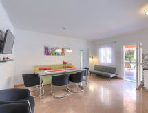 4-Zimmer-Haus 90 m2. Wohn-/Esszimmer mit Sat-TV (Flachbildschirm), Klimaanlage. Ausgang zur Terrasse. 1 Zimmer mit 1 Doppelbett. 2 Zimmer, jedes Zimmer mit 2 Betten. Offene Küche (Backofen, Geschirrspüler, 4 Glaskeramikherd Platten, Toaster, Wasserkocher, Mikrowelle, Tiefkühler, elektrische Kaffeemaschine). 2 Duschen/WC. Liegestühle. Zur Verfügung: Kinderhochstuhl, Babybett. Internet (Wireless LAN, gratis). Bitte beachten: Nichtraucher-Haus. Maximal 2 Haustiere/Hunde erlaubt. Ein Feriengenuss für Mensch und Tier. Hierbei handelt es sich um eine Hunde- und katzenfreundliche Ferienunterkunft. Geeignet zum Grillen. Das Haus ist auch mit einem Parkplatz ausgestattet. Es hat ein privater Pool. Es hat ein drahtloses lokales Netzwerk (WLAN). Ein Mikrowellenofen steht zur Verfügung.- Ausstattung