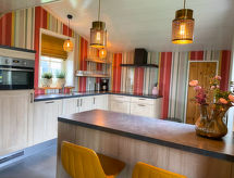 "Wiringhervilla 17", 3-Zimmer-Haus 100 m2. Abgeschrägt, komfortabel eingerichtet: Eingang mit sep. WC. Wohnzimmer mit Sat-TV, Stereoanlage und DVD. Ausgang zum Garten. Schlafnische. Offene Küche (Geschirrspüler, 4 Induktionskochplatten, Wasserkocher, elektrische Kaffeemaschine, Kombinationsmikrowelle). Heizung. Obergeschoss: 2 Zimmer, jedes Zimmer mit 2 Betten. Bad/Dusche/WC. Garten. Terrassenmöbel. Zur Verfügung: Waschmaschine, Wäschetrockner, Kinderhochstuhl, Babybett. Internet (Wireless LAN, gratis). Parkplatz beim Haus. Bitte beachten: Nichtraucher-Haus. 2 Haustiere/Hunde erlaubt. Rauchmelder. Nicht nur sind hier Haustiere erlaubt, sondern ihr Hund ist auch ein gern gesehener Feriengast. Für nützliche Informationen fragen Sie ungeniert die Rezeption an. Lust im Urlaub nicht immer selber zu kochen? Gönnen Sie sich einen Besuch im angeschlossenen Restaurant. Eine Sauna ist verfügbar. Es gibt ein DVD Spieler.- Charakteristik des Mietobjekts