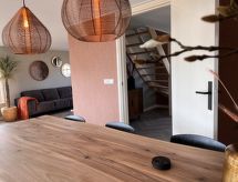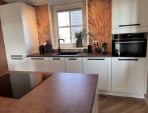 "Wiringhervilla 21", 4-Zimmer-Haus 100 m2. Abgeschrägt, komfortabel und stilvoll eingerichtet: Eingang mit sep. WC. Wohn-/Esszimmer mit Esstisch und TV (Flachbildschirm). Ausgang zur Terrasse. Offene Küche (Geschirrspüler, 4 Induktionskochplatten, Wasserkocher, Tiefkühler, elektrische Kaffeemaschine, Kombinationsmikrowelle). Heizung, Bodenheizung. Obergeschoss: 2 Zimmer, jedes Zimmer mit 1 Doppelbett. 1 Zimmer mit 2 Betten. Bad/Dusche/WC. Terrasse. Terrassenmöbel. Zur Verfügung: Waschmaschine, Wäschetrockner, Kinderhochstuhl, Babybett. Internet (Wireless LAN, gratis). Parkplatz beim Haus. Bitte beachten: Nichtraucher-Haus. 2 Haustiere/Hunde erlaubt. Rauchmelder. Das Sprudelbad steht im Garten zur Verfügung (extra). Auch ihr Hund ist hier ein gern gesehen Feriengast, schließlich gehört er zur Familie. Bitte melden Sie sich bei Anreise der Rezeption. In der Anlage dieser Urlaubsunterkunft ist unmittelbar auch ein Restaurant untergebracht. Ein eindrucksvoller Kinderspielplatz befindet sich ebenfalls auf dem Anwesen. Es hat eine Terrasse. Es hat ein Babybett. Es hat ein Geschirrspüler. Eine Sauna ist verfügbar. Ein Wäschetrockner ist verfügbar.- Charakteristik des Mietobjekts