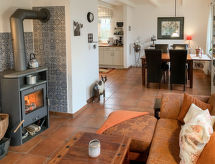 Schönes Landhaus "Witten". Im Ortsteil Moorweg, am Ortsrand, 6 km vom Zentrum von Esens, alleinstehende Lage, 9 km vom Meer, 9 km vom Strand. Zur Alleinbenutzung: grosser Garten mit Rasen und Blumen. Im Hause: Einstellraum für Fahrräder, Zentralheizung. Parkplatz (für 2 Autos) beim Haus. Einkaufsgeschäft 6.5 km, Lebensmittelgeschäft 6.5 km, Bäckerei 4 km, Café 4 km, Bushaltestelle 2.2 km, Bahnstation "Esens" 7 km, Fähre "Bensersiel" 9 km, Sandstrand 9 km, Freibad 9 km, Hallenbad 9 km. Golfplatz (9 Loch) 23 km. Bitte beachten: Fahrzeug empfohlen.Interior