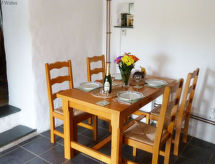 3-Zimmer-Landhaus auf 2 Stockwerken. Geräumig und hell, komfortabel und geschmackvoll eingerichtet: offenes Wohnzimmer mit TV, Flachbildschirm, Radio, CD und DVD. Offene Küche (4 Kochplatten, Backofen, Mikrowelle, Tiefkühler) mit Esstisch. Obergeschoss: 1 Doppelzimmer mit 1 Doppelbett. 1 Zimmer mit 2 Betten. Bad/Dusche/WC. Heizung. Terrassenmöbel. Zur Verfügung: Waschmaschine, Wäschetrockner. Internet (Wireless LAN, gratis). Bitte beachten: Nichtraucher-Haus. In unserem Garten bietet sich Ihnen viel Platz für Entspannung und Erholung. Das Haus ist auch mit einer Veranda ausgestattet. Ein Wäschetrockner ist verfügbar. Es hat ein DVD Spieler.- Charakteristik des Mietobjekts
