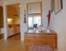 1-Zimmer-Wohnung 28 m2 im 2. Stock. Wohn-/Esszimmer mit 1 Doppelwandschrankbett (2 x 90 cm, Länge 190 cm), Kabel-TV (Flachbildschirm), Radio und DVD. Kochnische im Eingang (3 Kochplatten, Backofen, Toaster, Wasserkocher, elektrische Kaffeemaschine, Kapseln für die Kaffeemaschine (Nespresso) extra, Fondue Set (Chinoise)). Dusche/WC. Balkon, Südlage. Zur Verfügung: Haartrockner. Internet (Wireless LAN, gratis). Bitte beachten: Nichtraucher-Unterkunft. Nespresso-Kaffemaschine. Die tägliche Reinigung unter der Brause braucht wenig Zeit. Die Dusche dazu steht bereit. Objekt mit Lift. Das Haus ist auch mit einem Wäschetrockner ausgestattet.- Ausstattung