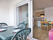 1-Zimmer-Studio 27 m2 im 1. Stock. Einfach und komfortabel eingerichtet: Wohnzimmer mit 1 Doppeldiwanbett (1 x 140 cm, Länge 190 cm), TV (Flachbildschirm). Ausgang zur Terrasse. Kabine mit 1 x 2 Etagenbetten (90 cm, Länge 190 cm). Kochnische (Backofen, Geschirrspüler, 2 Glaskeramikherd Platten, Mikrowelle, Tiefkühler, elektrische Kaffeemaschine). Dusche, sep. WC. E-Heizung. Terrassenmöbel. Zur Verfügung: Waschmaschine, Bügeleisen, Haartrockner. Internet (Wireless LAN, gratis). Parkplatz Nr. 109. Bitte beachten: Maximal 1 Haustier/Hund erlaubt. Rauchmelder. 641250011992F Residenz. Die tägliche Reinigung unter der Brause braucht wenig Zeit. Die Dusche dazu steht bereit. Ein Feriengenuss für Mensch und Tier. Hierbei handelt es sich um eine Hunde- und katzenfreundliche Ferienunterkunft. Ein Ort für Erholungsurlaube zum Sonnenbaden und Lesen im Garten. Ein Kinderbecken ist verfügbar. Ein drahtloses lokales Netzwerk (WLAN) ist vorhanden.- Charakteristik des Mietobjekts