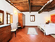 Country house "Rapolano", renovated, surrounded by fields. 1.5 km from the centre of Rapolano Terme, 25 km from the centre of Siena, 85 km from the centre of Firenze. For shared use: property (fenced) with lawn and flowers, swimming pool fenced (6 x 12 m, depth 90 - 180 cm, seasonal availability: 15.May. - 01.Oct.). Table tennis, patio, terrace, garden furniture, barbecue. In the house: reception, internet access, WiFi, central heating system, washing machine (for shared use, extra), heating to be paid on the spot, heating available only from 01.11. to 15.04.. Parking at the house. Supermarket 2 km, restaurant 2 km, railway station "Rapolano Terme" 2 km, thermal baths 2 km. Please note: main road close by. Additional accommodations can be booked.Interior