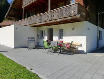 "Matte (Alte Post)", 3-room apartment 118 m2, on the ground floor. Spacious and bright, renovated in 2019, comfortable and tasteful furnishings: large living/dining room with dining table, digital TV, flat screen, radio and hi-fi system. 2 double bedrooms, each room with 1 double bed (160 cm, length 200 cm). Large, open kitchen (oven, dishwasher, 4 ceramic glass hob hotplates, toaster, kettle, microwave, freezer, electric coffee machine, Capsules for coffee machine (Nespresso) extra, raclette grill, fondue Set (cheese)) with dining table. Exit to the garden. Shower/WC, sep. WC. Underfloor heating. Wooden floors. Large terrace, south facing position, patio. Marvellous view of the mountains and the countryside. Facilities: washing machine, dryer, iron, children's high chair, baby cot for up to 2 year olds (extra), hair dryer. Internet (WiFi, free). Reserved parking (2 cars). Please note: suitable for families. Non-smokers only. Smoke alarm, fire extinguisher. Breakfast basket with local products can be booked separately.- Facilities
