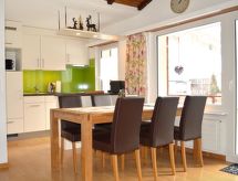 85 m2. More information by the provider: Our house is centrally situated and has enough parking space. The lawn has 100 m2 and invites you to have a barbecue. We fulfill your wishes: we have drinks for sale, a sauna, skiroom. Laundry. 3 1/2-room apartment (85 m2) with 2 bedrooms with two beds each and balcony, kitchen with dining table, fridge (250l), oven, coffee machine and kettle, living room with sofa, salon table, Swisscom-TV, radio with CD-player, internet access WLAN, day toilet and bathroom with bathtub and shower separately. Extra bed: CHF 30.-- Holiday taxes Summer (01.06. -31.10.): CHF 7.-/adults, CHF 3.50/children (age 6 - 15.99) per day. Holiday taxes Winter (01.11. -31.05.): CHF 4.50 for adults, CHF 2.25 for children (age 6 - 15.99) per day. Bedlinen, towels and kitchen cloths available.- Characteristics of the accommodation