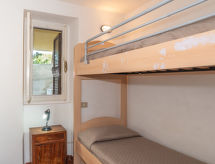 "Ananas 1 C", 4-room apartment 90 m2, on the ground floor. Very simple and practical furnishings: large dining room with TV (flat screen). Exit to the garden. 1 double bedroom. 1 small room with 1 x 2 bunk beds. 1 room with 2 beds. Kitchenette (4 hot plates, oven, dishwasher, freezer). Shower/bidet/WC. Garden. Balcony furniture, barbecue (portable). Facilities: washing machine. IUN:Q2811- Facilities