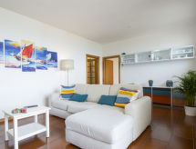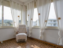 3-room apartment 100 m2 on 1st floor. Spacious, beautiful and tasteful furnishings: entrance hall. Living/sleeping room with 1 double sofabed (140 cm), satellite TV (flat screen). Exit to the terrace. 1 double bedroom with satellite TV (flat screen). Exit to the balcony. 1 room with 2 beds. Exit to the balcony. Kitchen (oven, dishwasher, Gas stove, 4 gas rings, toaster, kettle, microwave) with dining table and satellite TV (flat screen). Exit to the veranda. Shower/bidet/WC. Heating (extra). South facing position. Terrace furniture, balcony furniture. Very beautiful view of the sea. Facilities: washing machine. Internet (WiFi, free). Suitable for families.- Facilities