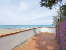 3-family house "Anna", 2 storeys. In the resort 500 m from the centre of San Vincenzo, excellent location: right in the centre but still quiet, 20 m from the sea, direct access to the beach, in a cul-de-sac. For shared use: property (fenced). Outdoor shower, parking on the premises. Grocery 100 m, supermarket, restaurant, café 200 m, pedestrian zone 400 m, railway station "San Vincenzo" 900 m, sandy beach 20 m, thermal baths "Calidario" 10 km. Marina 700 m. Nearby attractions: Baratti, Populonia, Bolgheri.Interior