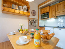 Residence "Arcelle", 7 storeys. In the centre of la station, in a busy position, 20 m from the skiing area. In the complex: lift, storage room for skis, laundry. In Winter: please take snow chains. Parking (in winter extra). Shop, grocery, supermarket, shopping centre, restaurant, bar 2 m, bakery 10 m, café 5 m, pedestrian zone 2 m, bus stop "20", railway station "40". Sports centre 5 m, chair lift 50 m, gondola lift, skisport facilities 40 m, slopes 100 m, ski rental 2 m, ski school 40 m, cross country ski track 1 km, ice field 150 m. Nearby attractions: Les Menuires 1 km. Well-known ski regions can easily be reached: 3 Vallées. Well-known lakes can easily be reached: Lac du lou 1 km, Lac Menuires 800 m. Please note: baby equipment on request (extra). Groups of teenagers on request only. The owner does not accept any groups. In case of good snow conditions, the house is accessible on skis. The keys‘ handover takes place by the agency Interhome ValThorens. There are more similar properties for rent in this same residence.Interior