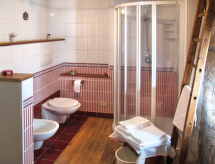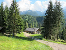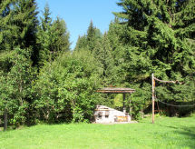 Chalet "Baita El Deroch", 1'420 m a.s.l., detached, surrounded by trees and meadows. 9.8 km from the centre of Predazzo, 3.9 km from the centre of Bellamonte, 71 km from the centre of Bolzano, on a slope. In the house: storage room for bicycles, storage room for skis. 200 m long very bumpy motor access. In Winter: please take snow chains. Stepped path to the house. Parking (for 4 cars) on the premises. Shop 3.9 km, supermarket 9.8 km, bus stop 200 m, indoor swimming pool 9.8 km. Golf course (9 hole) 35 km, walking paths from the house 10 m, cable car 11.9 km, gondola lift 3.4 km. Well-known ski regions can easily be reached: Castelir -Lusia 3400 km, Latemar 1900 km.Interior