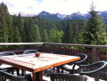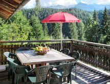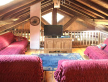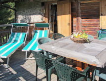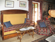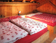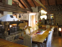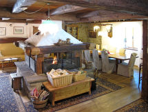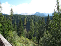 "Baita El Deroch (PRZ330)", 3-room house 150 m2 on 2 levels. Cosy and wooden furniture furnishings: living/sleeping room, on 2 levels with 1 double bed, open-hearth fireplace, Scandinavian wood stove, dining table, cable TV and hi-fi system. Exit to the terrace. 1 room with 1 french bed (160 cm). Open kitchen (oven, 2 gas rings, kettle, freezer, electric coffee machine). Shower/WC, sep. WC. On the lower ground floor: Sauna. Electric heating. Top floor: 1 room with sloping ceilings with 1 bed (80 cm), 2 double beds. Wooden floors. Terrace 20 m2 partly roofed. Terrace furniture, barbecue, deck chairs, box-room. Beautiful view of the mountains and the countryside. Facilities: washing machine, sauna, iron, baby cot. Please note: non-smokers only. Maximum 2 pets/ dogs allowed. CIPAT:022147-AT-059680- Facilities
