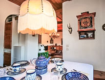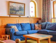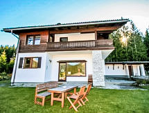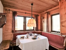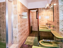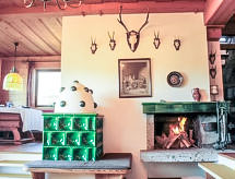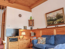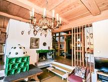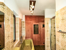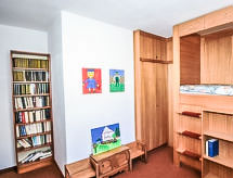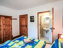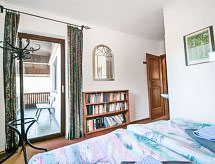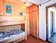 5-room house 150 m2 on 2 levels. Object suitable for 6 adults + 2 children. Simple and cosy furnishings: entrance hall. Large living/dining room with open-hearth fireplace, dining nook and TV. Exit to the terrace. 1 room with 1 french bed (160 cm), shower/WC. Kitchen (oven, dishwasher, 4 ceramic glass hob hotplates, freezer, electric coffee machine). Sep. WC. Upper floor: 1 room with 1 french bed (160 cm), hand-basin. 1 room with 1 french bed (160 cm). 1 children's room with 1 x 2 bunk beds, hand-basin. Bath/shower/WC, Sauna. Large balcony. Balcony furniture. Very beautiful view of the mountains and the ski run. Facilities: children's high chair, baby cot for up to 3 year olds, hair dryer. Internet (WiFi). Please note: non-smokers only. Maximum 2 pets/ dogs allowed.- Facilities