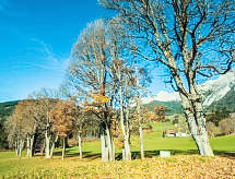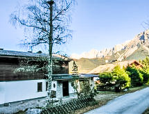 Ramsau am Dachstein: Cosy, comfortable country house "Berghaus Weitblick". In the district of Vorberg, 2.3 km from the centre, in a quiet position on a slope, 1.2 km from the skiing area, in the countryside. Private: natural state property 1'300 m2 with lawn for sunbathing. Terrace, garden furniture, barbecue, fireplace. In the house: WiFi, sauna, storage room for skis, washing machine. Bread roll service. Narrow motor access to the house. In Winter: please take snow chains. Parking (for 3 cars) on the premises. Shop 2 km, restaurant 900 m, bathing lake "Ramsau Beach" 2.4 km. Riding stable 2 km, sports centre 3.2 km, walking paths from the house 1 m, ski lift 1.4 km, ski rental 2 km, ski bus stop 300 m, ski school 1.4 km, cross country ski track 350 m. Nearby attractions: nordisches Leistungszentrum Ramsau 3.2 km, Dachstein Gletscherbahn 9 km. Well-known ski regions can easily be reached: Hauser Kaibling, Planet Planai, Dachstein. Hiking paths: Fageralm, Reiteralm.Interior