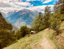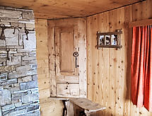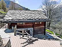 Cosy, rustic chalet "Bildji", 1'500 m a.s.l., 2 storeys, built in 1881, renovated in 2005, surrounded by trees and meadows. Above Staldenried, 5 km from the centre, in a secluded, quiet, sunny position on a slope, 5 km from the skiing area, in the countryside. Private: property, natural garden, meadow. Patio, barbecue. In the house: sauna, washing machine. Narrow motor access to 200 m from the house (mountain road). In Winter: please take snow chains, 4x4 car recommended in winter. 200 m steep footpath to the house. Parking at 200 m. Grocery 5 km, restaurant 5 km, railway station "Stalden" 10 km. Cable car 5 km, ski lift 5 km, skisport facilities 5 km, slopes 5 km, sled run 5 km. Hiking paths: Gspon - Saastal. Please note: car recommended. Access road cleared white in winter.Interior