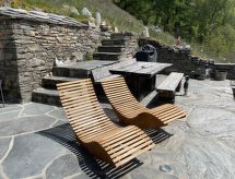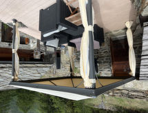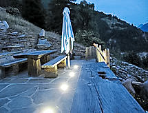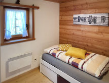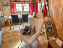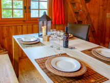 3-room chalet 120 m2 on 2 levels. Rustic and cosy furnishings: living/dining room with Scandinavian wood stove and satellite TV (flat screen). Exit to the patio. Open kitchen (oven, dishwasher, 4 ceramic glass hob hotplates, microwave, electric coffee machine, Capsules for coffee machine (Tschiboo)) with dining table. On the lower ground floor: 1 double bedroom. 1 room with 1 bed. Bath/WC. Electric heating, wood heating. Patio. Terrace furniture, deck chairs (4). Very beautiful view of the mountains, the valley and the countryside. Facilities: Internet (WiFi, free). Reserved parking at 200 m. Limited Wi-Fi capacity.- Facilities