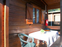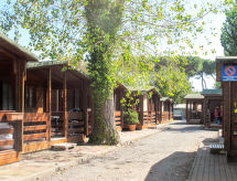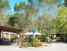 "Camping Campeggio Italia (MAS372)", 2-room bungalow 24 to 30 m2. Practical and wooden furniture furnishings: 1 room with 1 french bed. Kitchen-/living room (oven, 4 gas rings, freezer) with dining table and TV. Exit to the veranda. Shower/WC. Electric heating, air-conditioning. Wooden floors. Terrace furniture. Facilities: children's high chair, baby cot for up to 2 year olds. Internet (WiFi, free). Reserved parking. Please note: non-smokers only. 2 pets/ dogs allowed.- Facilities