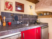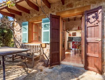 "Casa Groc (CIX130)", 1-room house 40 m2. Tasteful furnishings: kitchen-/living room (dishwasher, 2 gas rings, toaster) with 1 double bed, dining table, satellite TV, CD-player, DVD and fan. Shower/WC. Gas heating. Solar power. Terrace. Terrace furniture, barbecue (portable). Facilities: children's high chair, baby cot for up to 2 year olds, hair dryer. Internet (WiFi, free). Please note: non-smokers only. Maximum 1 pet/ dog allowed. Smoke alarm, fire extinguisher. 55/2013/AG- Facilities