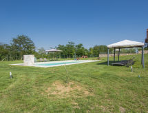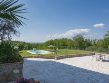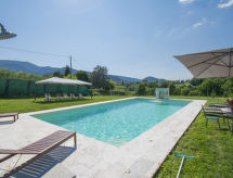 Comfortable country house "Celeste", renovated in 2018. 15 km from the centre of Lucca, 800 m from the centre of Castelvecchio, 26 km from the centre of Pisa, on a slope, 40 km from the sea. Private: property 10'000 m2 (fenced), terraced garden with lawn and trees, swimming pool (12 x 6 m, depth 150 cm, seasonal availability: 01.Apr. - 02.Oct.). Outdoor shower, terrace, garden furniture. In the house: burglar alarm system. Room cleaning weekly on request (extra). Cook on request (extra). Parking (for 10 cars) on the premises. Shop 1.4 km, supermarket 6 km, sandy beach 40 km.Interior