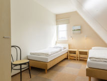 "Comfort Cottage", 5-room house 111 m2 on 2 levels. Comfortable furnishings: entrance hall with separate WC. Living/dining room with dining table, digital TV, hi-fi system and DVD. Exit to the terrace. 1 double bedroom with 2 beds. Open kitchen (4 hot plates, dishwasher, electric coffee machine, combination microwave). Hip bath. Upper floor: 3 double bedrooms with sloping ceilings, each room with 2 beds. Shower/WC. Terrace. Terrace furniture, box-room. Facilities: telephone (extra), children's high chair, baby cot. Internet (WiFi, free). Reserved parking at the house. Please note: smoke alarm.- Facilities