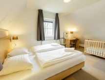 "Premium Cottage", 5-room house 111 m2 on 2 levels. Comfortable furnishings: entrance hall with separate WC. Living/dining room with dining table and TV (flat screen), hi-fi system and DVD. Exit to the terrace. 1 room with 2 beds. Open kitchen (4 hot plates, dishwasher, electric coffee machine, combination microwave). Shower. Upper floor: 2 rooms with sloping ceilings, each room with 2 beds. 1 room with sloping ceilings with 2 beds and TV (flat screen). Shower/WC. Terrace. Terrace furniture, box-room. View of the lake. Facilities: telephone (extra), children's high chair, baby cot, hair dryer. Internet (WiFi, free). Reserved parking at the house. Please note: smoke alarm.- Facilities