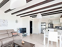Villa "Checa". On the outskirts, 1 km from the centre of Els Poblets, outside the resort, 9 km from the centre of Dénia, in the district Platja Almadrava, in a quiet, sunny position, 5 m from the sea, direct access to the beach, north facing position. Private: swimming pool (3 x 8 m, depth 80 - 190 cm, seasonal availability: 01.Jan. - 13.Dec.) with internal staircase. Unconventional pool shape. Parking (for 2 cars) on the premises. Supermarket, restaurant 100 m, bar, bus stop 200 m, railway station 10 km, sandy beach 900 m, shingle beach 5 m. Golf course (18 hole) 7 km, riding stable 7 km. The owner does not accept any youth groups. Please note: airfield 100 km from the property.Interior