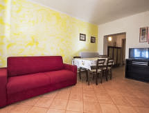 On the Tyrrhenian coast of Tuscany, this beautiful property is surrounded by olive groves and a private pool for guests. Beautiful 3-family house "Coast", surrounded by fields. Below Bibbona 7 km from the centre of Cecina, 16 km from the centre of Castagneto Carducci, 20 km from the centre of San Vincenzo, 6 km from the sea, in the countryside. For shared use: property (fenced), garden, swimming pool (6 x 12 m, depth 140 cm, seasonal availability: 01.May. - 31.Sep.). Outdoor shower, table tennis, barbecue. Private: patio, garden furniture. In the house: internet access, heating available only from 15.10. to 15.04.. Parking on the premises. Grocery 3 km, supermarket 7 km, railway station 7 km, sandy beach 6 km. Please note: the owner lives on the same property. Additional accommodations can be booked. From the property you have easy access to nearby beaches of Marina di Bibbona, Cecina and Donoratico.Interior