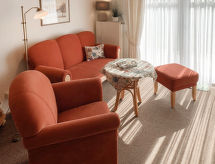 2-room apartment 35 m2, on the ground floor. Beautiful and cosy furnishings: living/dining room 15 m2 with digital TV, flat screen and hi-fi system. Exit to the terrace. 1 room 8 m2 with 1 double bed (2 x 80 cm, length 200 cm). Kitchenette (2 hot plates, toaster, kettle, microwave, electric coffee machine). Shower/WC. Terrace. Terrace furniture. Facilities: telephone (extra), children's high chair (extra), hair dryer. Please note: fridge without freezer, non-smokers only.- Facilities
