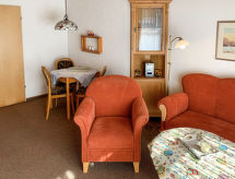 Apartment house "Dehne". In the centre of Norddeich, 500 m from the sea, 700 m from the beach. For shared use: beautiful garden. Barbecue. In the house: central heating system. Parking at the house. Supermarket 550 m, restaurant 50 m, bakery, café 150 m, bus stop 50 m, railway station, ferry, sandy beach 700 m, outdoor swimming pool 14 km, indoor swimming pool 650 m. Golf course (9 hole) 8 km, children's playground 650 m.Interior