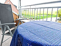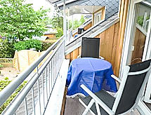 2-room apartment 45 m2, on the upper floor. Cosy furnishings: living/dining room 27 m2 with 1 fold-away bed (90 cm, length 190 cm), satellite TV and hi-fi system. Exit to the balcony. 1 room 11 m2 with 1 double bed (2 x 90 cm, length 200 cm). Kitchenette (4 hot plates, dishwasher, toaster, microwave, electric coffee machine) with dining table. Shower/WC. Balcony furniture. Facilities: children's high chair (extra). Please note: non-smokers only.- Facilities