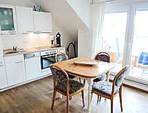 Terraced house "Dehne". On the outskirts, 100 m from the sea, 1 km from the beach, in a cul-de-sac. In the house: central heating system. Parking at the house. Supermarket 1.7 km, restaurant, bakery, café 700 m, railway station "Norddeich" 550 m, ferry 700 m, sandy beach 1 km, outdoor swimming pool 14 km, indoor swimming pool 2.3 km. Golf course (9 hole) 9 km, surf school 1.4 km, tennis 3.6 km, minigolf 2.3 km.Interior