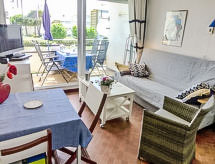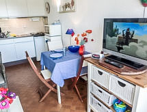 Residence "Du Soleil". In the district of La Motte du Couchant, 1.2 km from the centre, 200 m from the sea, 150 m from the beach. For shared use: swimming pool (21 x 12 m, depth 60 - 190 cm, seasonal availability: 15.Jun. - 15.Sep.). Outdoor shower. In the complex: lift. Public parking on the road extra. Shopping centre, restaurant, bar 100 m, bus stop 250 m, railway station "Montpellier" 25 km, sandy beach 150 m, indoor swimming pool 3 km, thermal baths "Thalasso Spa" 3 km. Sports harbour 900 m, golf course (18 hole) 3.5 km, sailing school 700 m, tennis 3 km, riding stable 1 km. Nearby attractions: Le Seaquarium du Grau Du Roi 10 km, Les Remparts d'Aigues Mortes 12 km, Les Saintes Maries de la Mer 40 km. Please note: airfield close by 20 km from the property. Additional accommodations can be booked.Interior