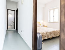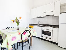 San Nicolò di Ricadi 9 km from Tropea: Cosy, simple holiday village "Esmeraldo". 60 apartments in the residence. In the district Contrada Grotticelle, in a sunny position, 350 m from the sea, 350 m from the beach, direct access to the beach. For shared use: garden plants and trees, swimming pool (18 x 9 m, depth 100 - 140 cm, seasonal availability: 01.May. - 07.Nov. pool opening hours: 09:30-13:30 and 14:30-19:00). Shower/WC in the pool area, children's pool, outdoor shower, tennis, table tennis. In the complex: reception, restaurant, bar, breakfast room, lounge with TV, WiFi (all extra), bicycle rental. Linen change (suppl. charge extra). Towel change (suppl. charge extra). Room cleaning on request (extra). Breakfast full board half board on request (extra). Airport transfer (extra). Parking. Shop, grocery 200 m, supermarket 2 km, restaurant, bar 300 m, bus stop "Grotticelle / Stella Marina" 10 m, railway station "Ricadi" 2 km, sandy beach "Grotticelle" 350 m. Nearby attractions: Tropea 9 km. Please note: no lift. Entertainment in the season. Suitable for families. On request: airport transfer to the holiday accommodation. Loading and unloading of baggage is possible at the holiday house. The photograph shows a typical example. Additional accommodations can be booked. The complex has another 60 houses for rent. The holiday properties may differ in living space, floorplan, equipment and furnishing.Interior