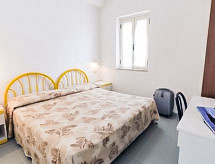 3-room apartment 40 m2. Simple furnishings: small living/dining room. 1 double bedroom. 1 room with 3 beds. Kitchenette (4 hot plates, mini-oven, freezer). Shower/bidet/WC. No heating option. Small balcony or small terrace roofed. Reserved parking space n 1 (roofed, fenced). Suitable for families. 1 small pet/ dog allowed.- Facilities