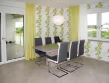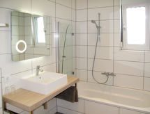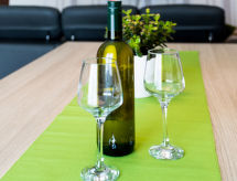 Modern, beautiful apartment block "Fuchs", built in 2015, surrounded by meadows and fields. 4 apartments in the property. 300 m from the centre of Donnerskirchen, 14 km from the centre of Eisenstadt, 66 km from the centre of Wien, in the residential district. Outdoor swimming pool 1.5 km. Golf course 2.2 km. Please note: animals in the neighbourhood. The photograph shows a typical example. There are more similar properties for rent in this same residence.Interior