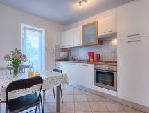Semi-detached house "Gojak", 2 storeys. In the district of Busoler 3.5 km from the centre of Pula, in a quiet, sunny position, 5 km from the sea. Private: property 260 m2 (fenced), small garden with lawn and wildlife garden. In the house: internet access, washing machine. Parking at the house. Shop 100 m, supermarket 1 km, restaurant 350 m, pebble beach 5 km. Marina 5 km, surf school 11 km, tennis 6 km, riding stable 11 km, walking paths from the house 200 m, cycle lane 250 m.Interior