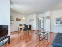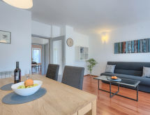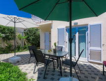 4-room semi-detached house 128 m2 on 2 levels. Living/dining room with 1 double sofabed (140 cm, length 200 cm), satellite TV (flat screen). Exit to the terrace. Kitchen (4 hot plates, oven, dishwasher, freezer, electric coffee machine). Exit to the garden. Sep. WC. Upper floor: entrance hall with air conditioning. 1 room with 1 french bed (160 cm, length 200 cm). 1 room with 1 bed (90 cm, length 200 cm). Exit to the terrace. 1 room with 1 bed (90 cm, length 200 cm). Bath/bidet/WC. Heating (extra). Terrace 20 m2, terrace 3 m2. Terrace furniture, barbecue (portable). View of the garden. Facilities: safe, hair dryer. Internet (WiFi, free). 1 pet/ dog allowed.- Facilities