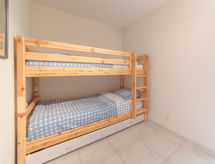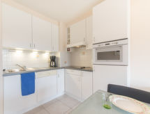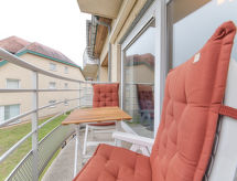 "Green Garden VIII - 105", 2-room apartment 47 m2 on 1st floor. Practical and cosy furnishings: entrance hall with 1 x 2 bunk beds (90 cm, length 200 cm). 1 double bedroom with 1 double bed (160 cm, length 200 cm). Living room with TV and CD-player. Open kitchen (4 hot plates, dishwasher, toaster, kettle, electric coffee machine, combination microwave) with dining table. Shower/WC. Electric heating, boiler (70 litres). Small balcony, south-west facing position. Balcony furniture. Beautiful view of the garden. Facilities: Internet (WiFi, free). Garage space n 65 on the property. Please note: non-smoking house. Smoke alarm, fire extinguisher.- Facilities