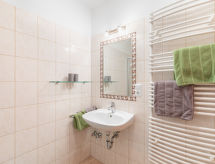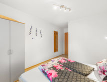 3-room apartment 60 m2 on 1st floor. Modern and cosy furnishings: living/sleeping room with 1 double sofabed, dining table and cable TV (flat screen), DVD. Exit to the balcony. 2 double bedrooms, each room with shower/WC. Open kitchen (oven, dishwasher, 4 ceramic glass hob hotplates, toaster, microwave, freezer, electric coffee machine). Balcony 7 m2. Terrace furniture. View of the mountains. Facilities: Internet (WiFi, free). Please note: non-smokers only. 1 small pet/ dog allowed. 50628-000762-2020- Facilities