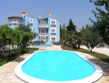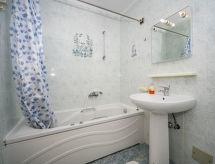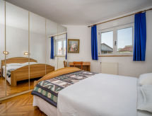 2-room apartment 65 m2 on 1st floor. Object suitable for 2 adults + 2 children. Large living/dining room 45 m2 with 1 double sofabed, satellite TV and air conditioning. Exit to the terrace. 1 room with 1 double bed (2 x 80 cm, length 190 cm). Open kitchen (4 hot plates, oven, freezer, electric coffee machine). Bath/WC, hydro massage bath. Forced-air heating. Terrace 3 m2, roofed. Terrace furniture. View of the garden.- Facilities