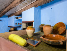 "Hostalas", 4-room terraced house 120 m2 on 3 levels. Object suitable for 6 adults. Practical and comfortable furnishings: large kitchen (4 hot plates, oven, toaster, microwave, freezer) with open-hearth fireplace, dining table, digital TV and flat screen. Bath/bidet/WC. Electric heating. Upper floor: 1 double bedroom with 1 french bed (135 cm, length 190 cm). Exit to the balcony. 1 double bedroom with 1 french bed (135 cm, length 190 cm). 1 double bedroom with 1 french bed (135 cm, length 190 cm). Playroom with library. 2nd upper floor: walk-through room with sloping ceilings. Exit to the terrace. Small balcony, large terrace. Terrace furniture, barbecue (portable). View of the countryside and the resort. Facilities: washing machine, iron, children's high chair, baby cot, hair dryer. 1 pet/ dog allowed. VT-40362-CS- Facilities